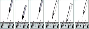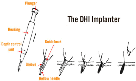 DHI植髮器能減少對頭髮毛囊的破壞,使頭髮毛囊安全地從捐髮區移植到植髮區。某些情況下,例如頭部皮膚曾因意外或其它植髮手術而留下疤 痕,醫生會利用鑷子協助植入毛囊 。